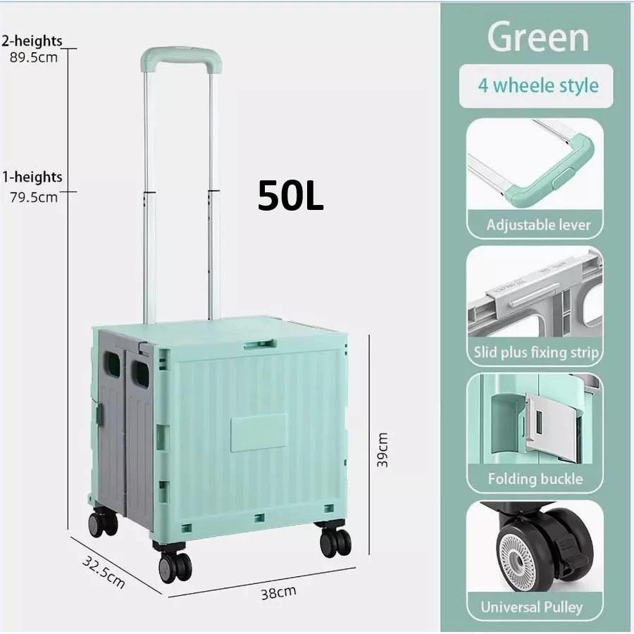 myCK Foldable Shopping Cart Trolley with Adjustable Handle (50L) – Green