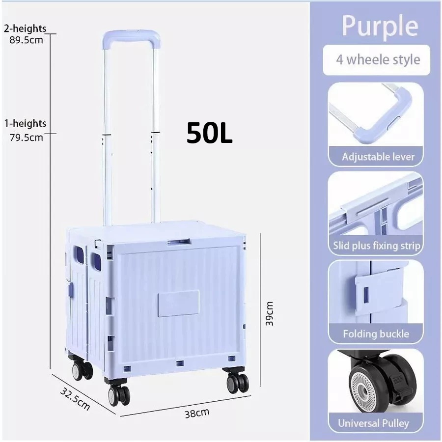 myCK Foldable Shopping Cart Trolley with Adjustable Handle (50L) – Purple