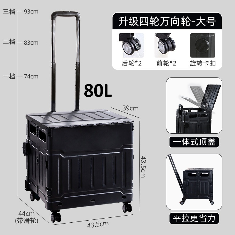 myCK Foldable Shopping Cart Trolley with Adjustable Handle (80L) – Black