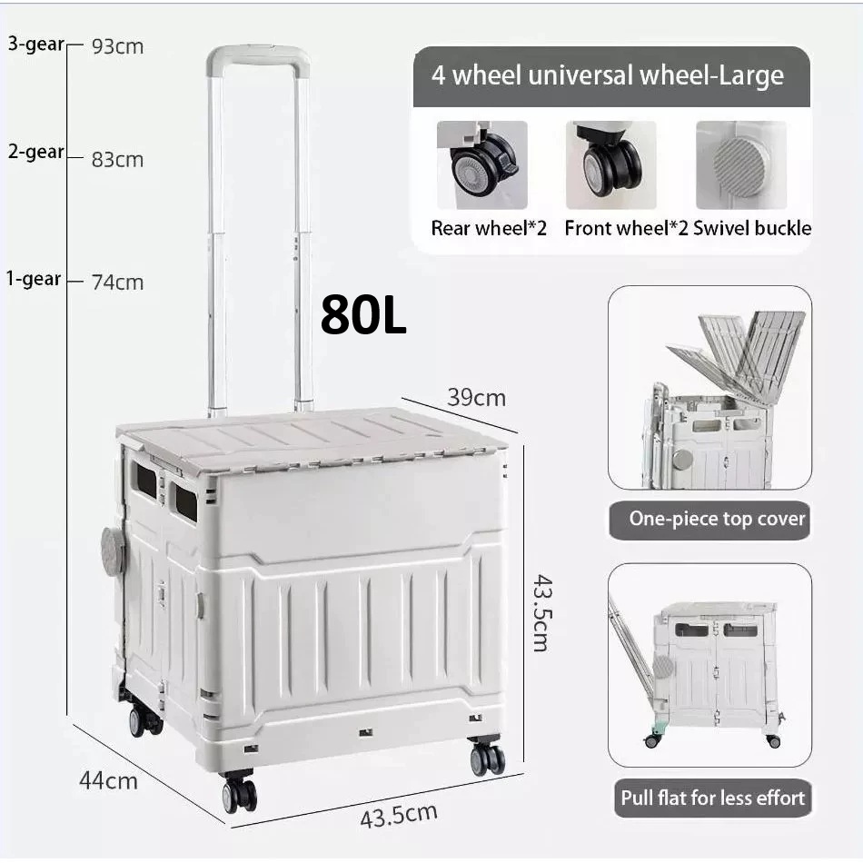 myCK Foldable Shopping Cart Trolley with Adjustable Handle (80L) – Light Grey